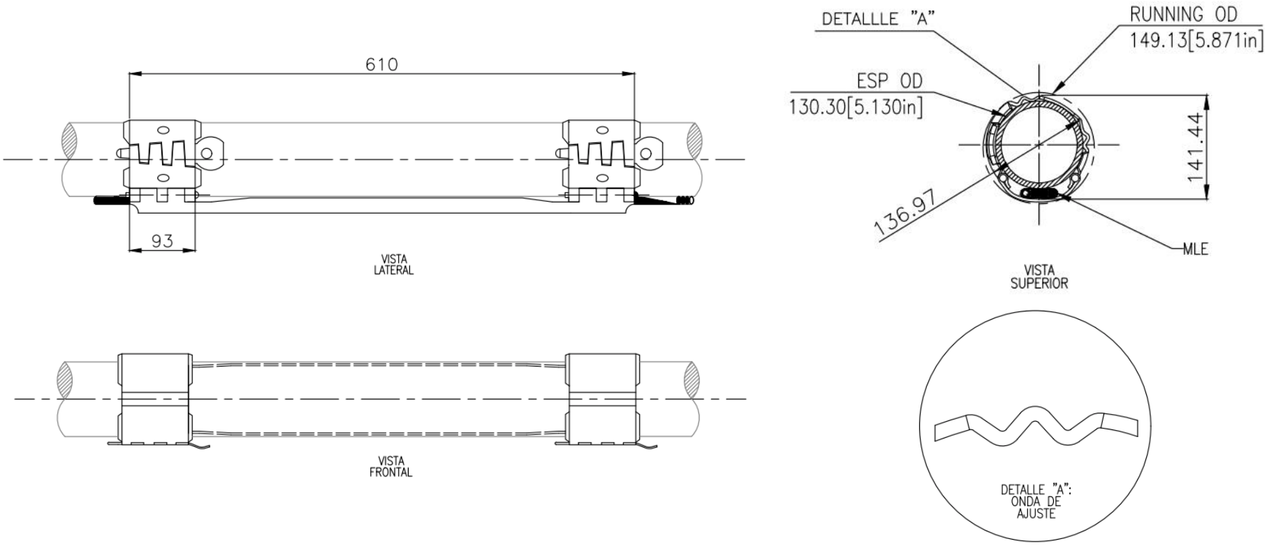 Especificaciones Material Espesor ASTM A-36/A1011 3 mm Aplicaciones OD ESP MLE 5,13 in AWG # 4-6 Protector